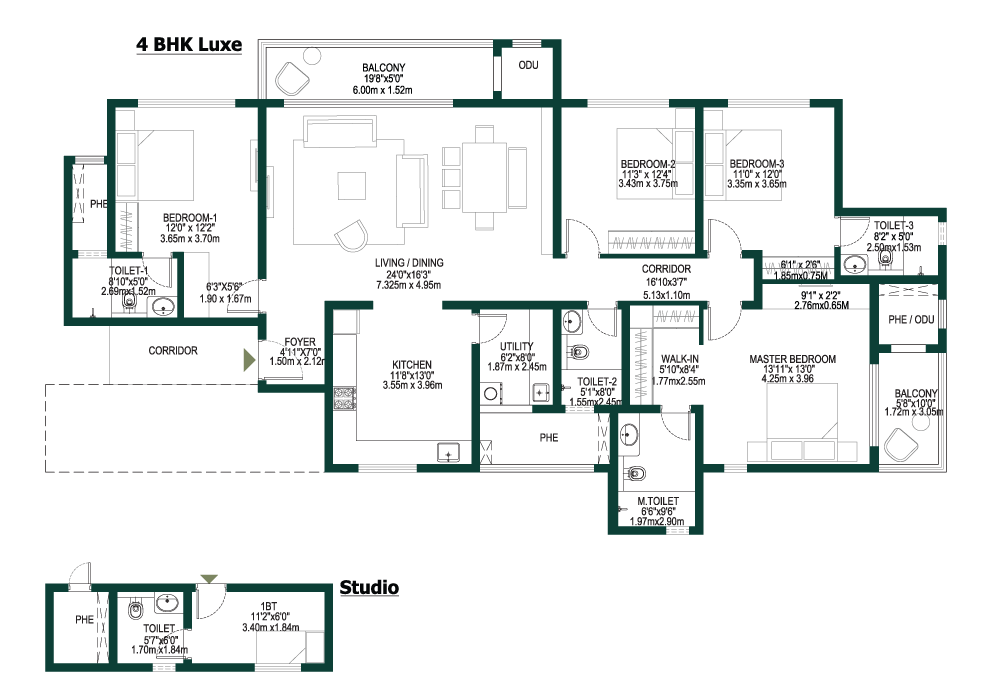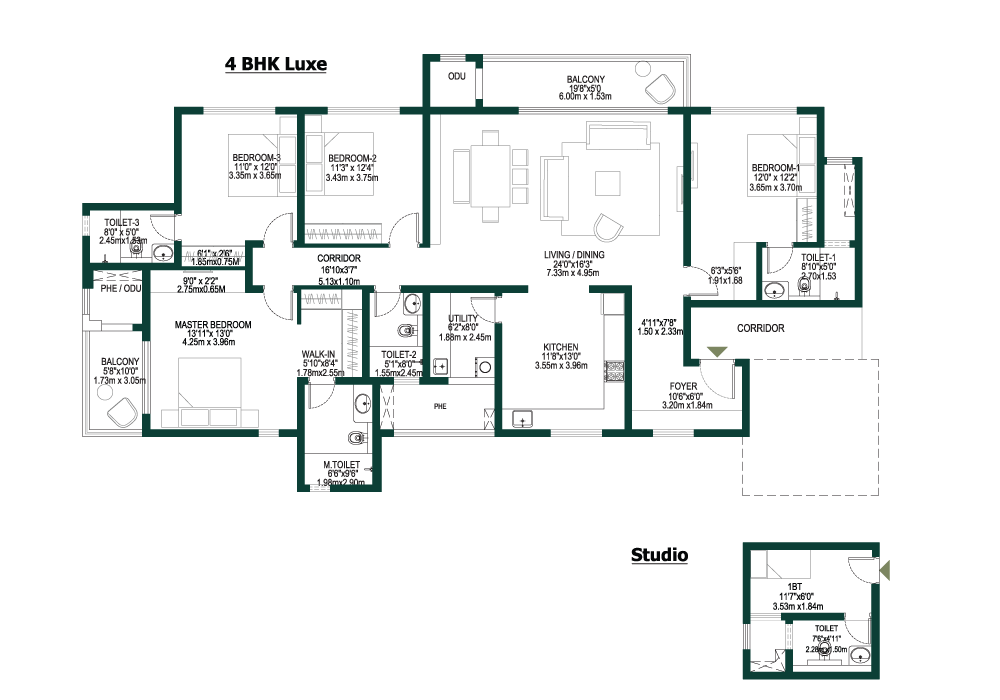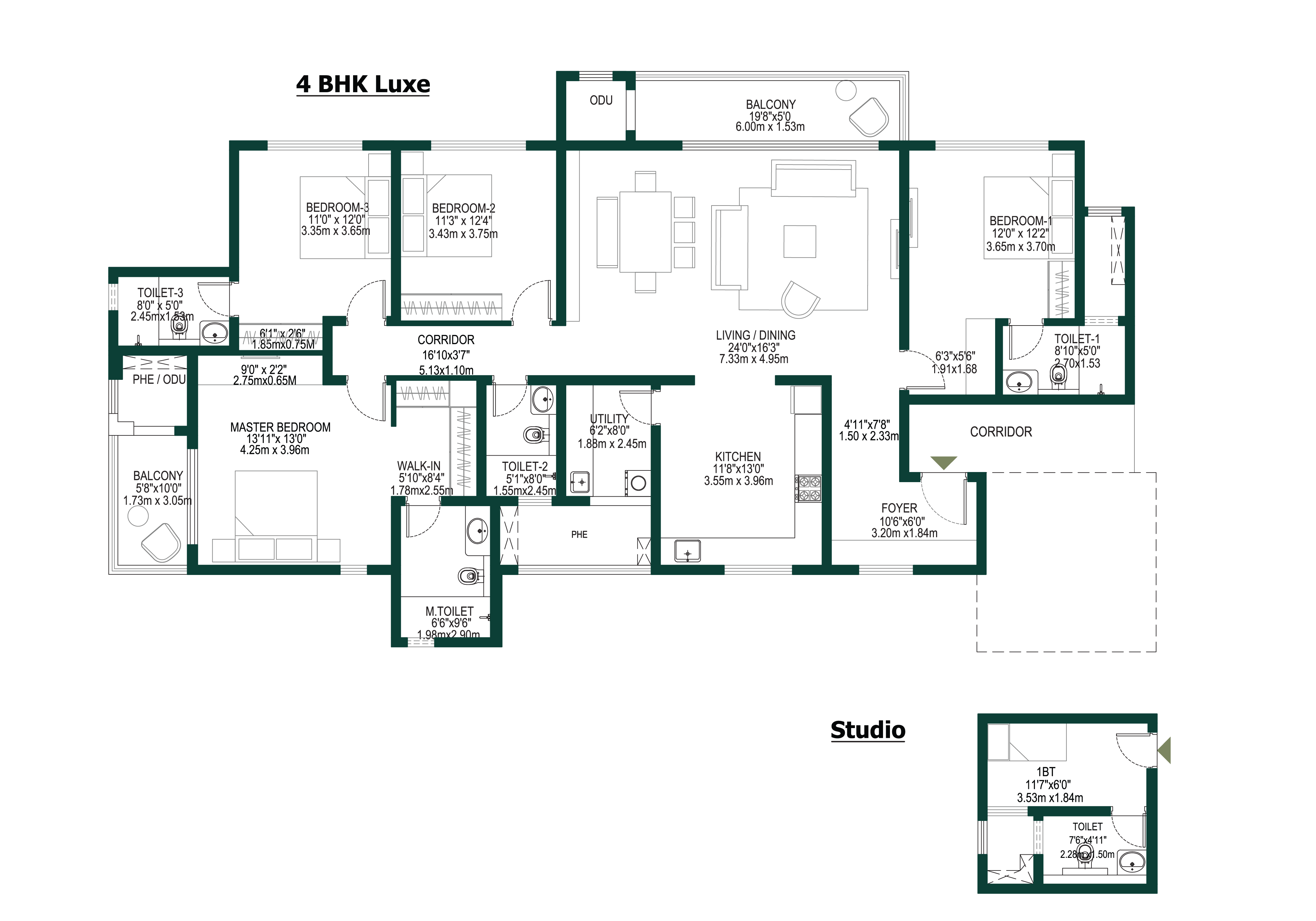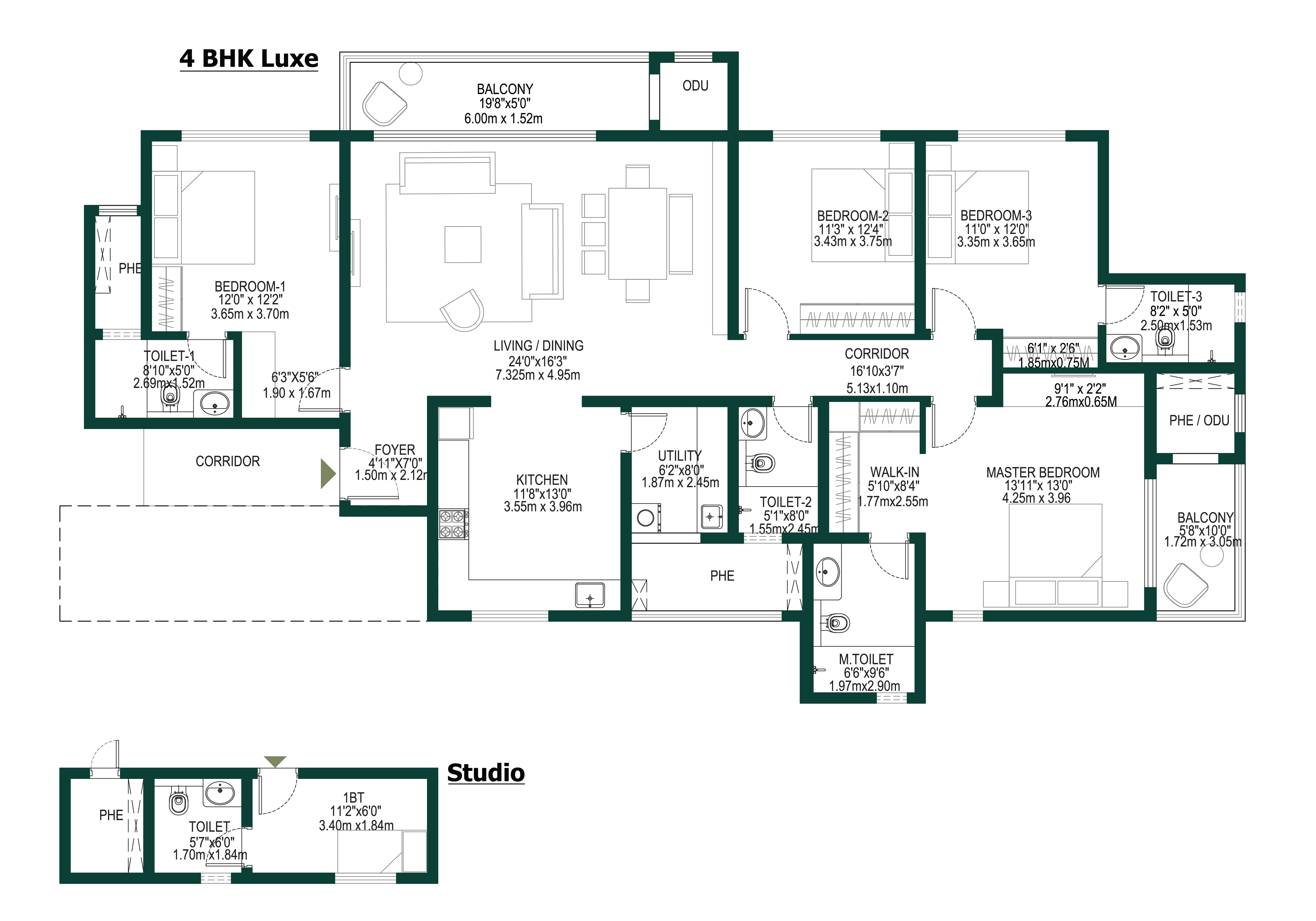 | 3 Bed Room + 3T | 1800 - 1900 |