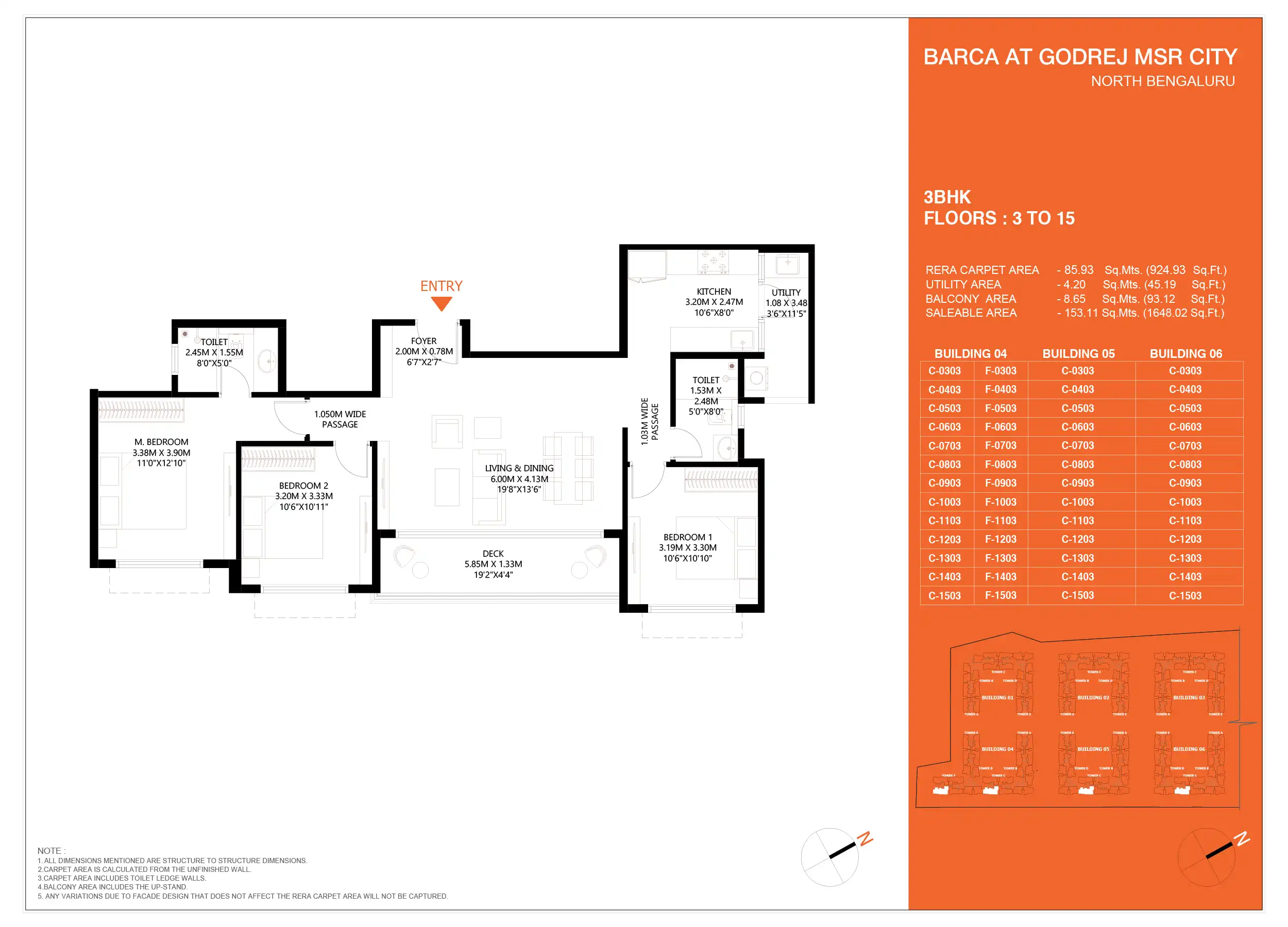 | 3 Bed Room + 2T | 1600 - 1700 |